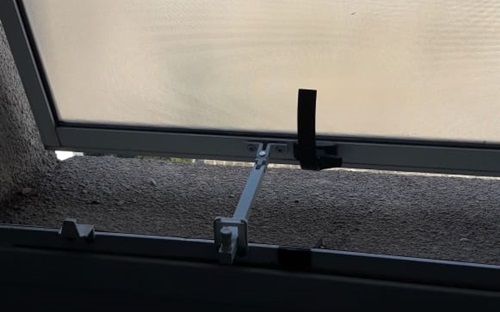 Como opção, temos as travas limitadoras feitas em alumínio, este tipo de trava possui a praticidade de remoção do pino, para quando necessário realizar a limpeza do local, sendo também um otimo limitador tanto para a abertura quanto para o fechamento das janelas, feito para tomar sol e chuva e assim uma opção para quem não quiser colocar as redes de proteção.